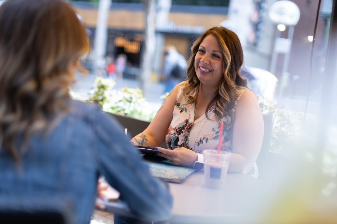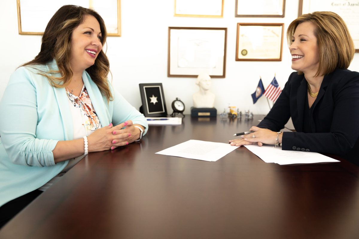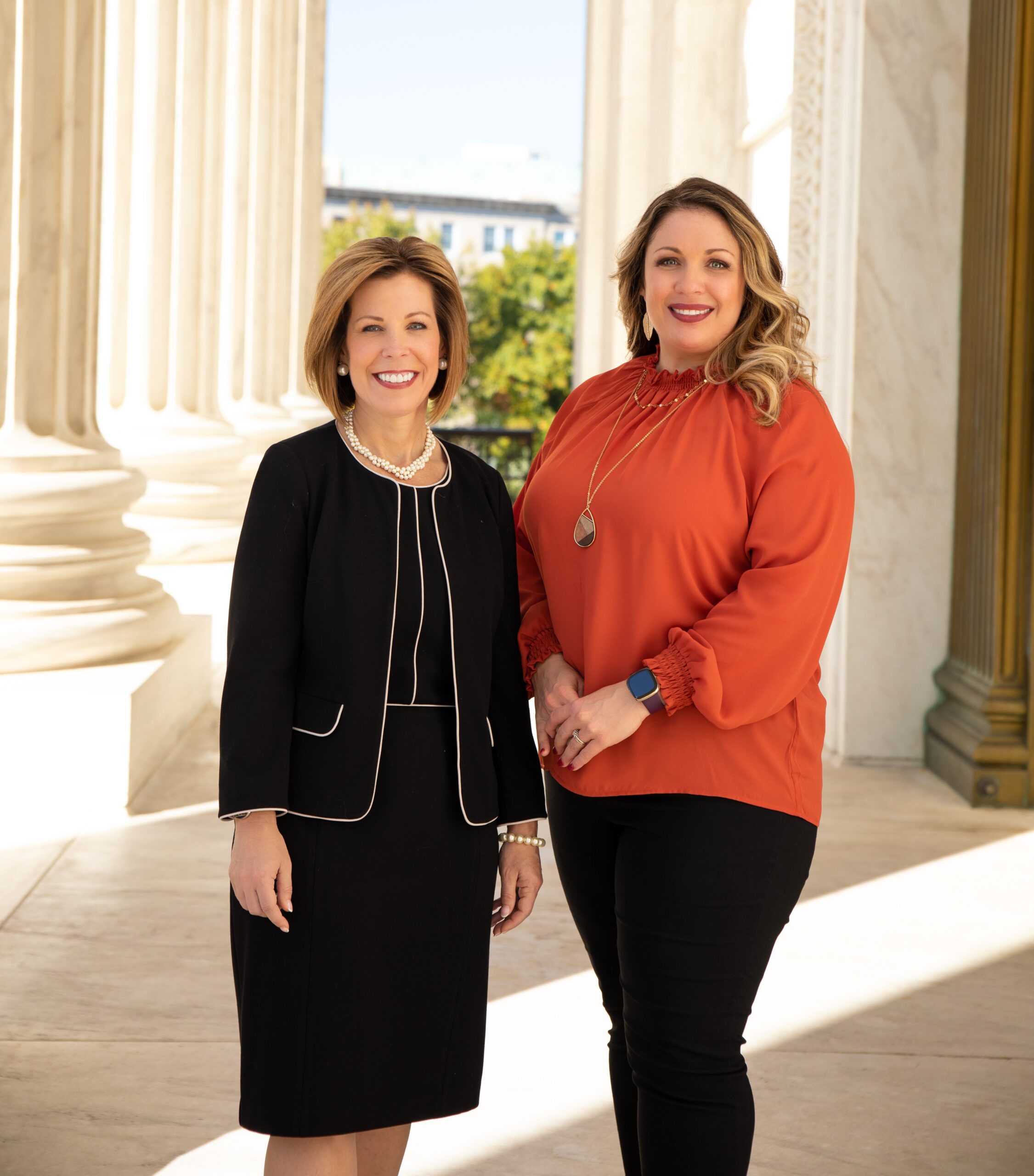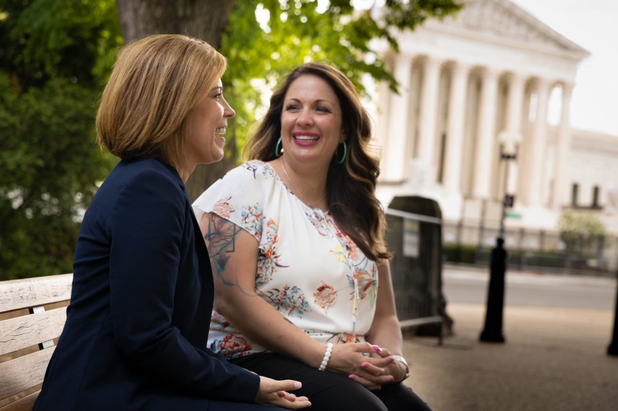 Lorie Smith (left), owner and founder of 303 Creative, and Kristen Waggoner (right), general counsel of Alliance Defending Freedom.