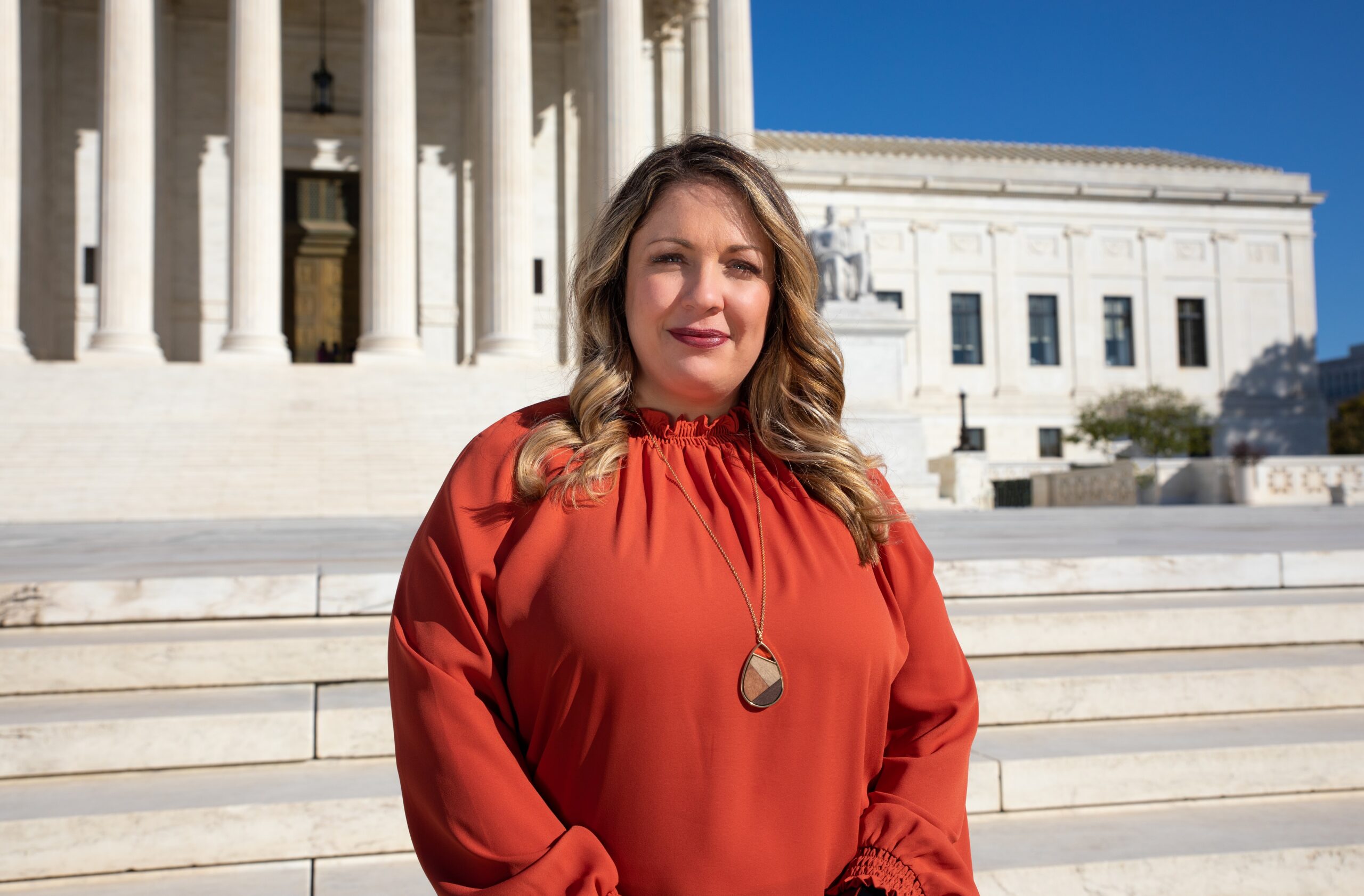Lorie Smith, owner and founder of 303 Creative, at the U.S. Supreme Court in Washington, D.C.
