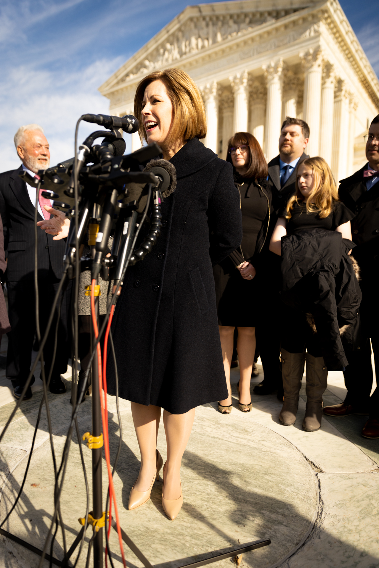 ADF CEO, President, and General Counsel Kristen Waggoner speaks at a press conference at the U.S. Supreme Court in Washington, D.C., following her oral argument on behalf of Lorie Smith on Dec. 5, 2022.