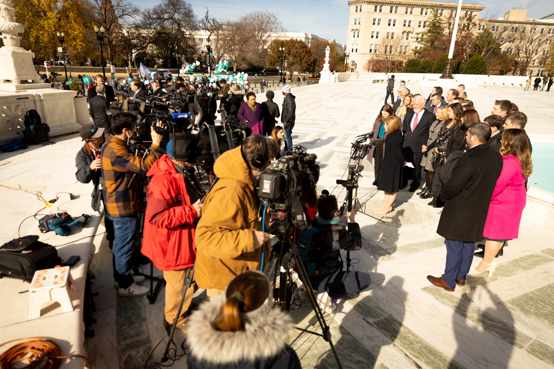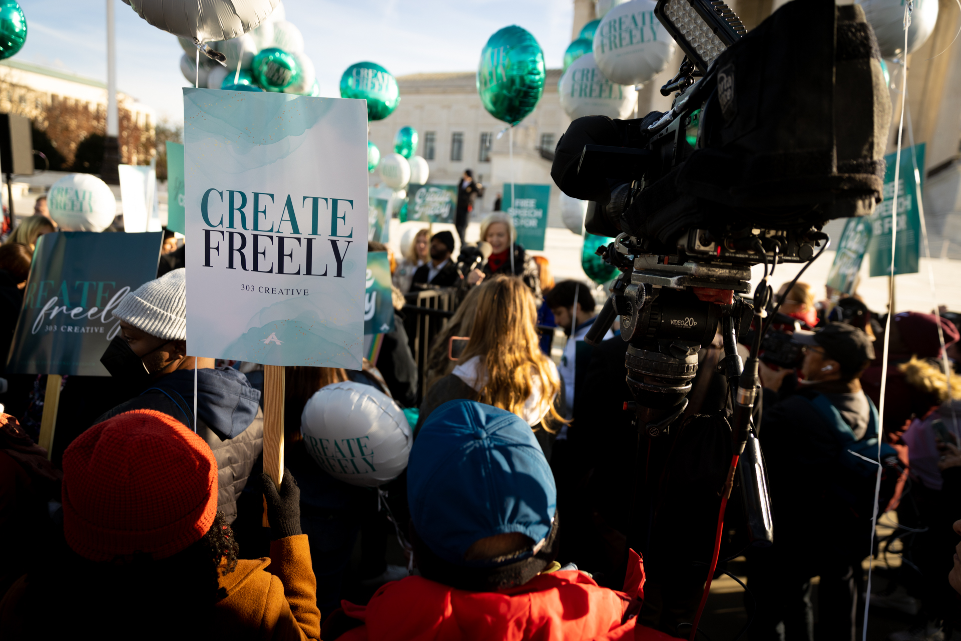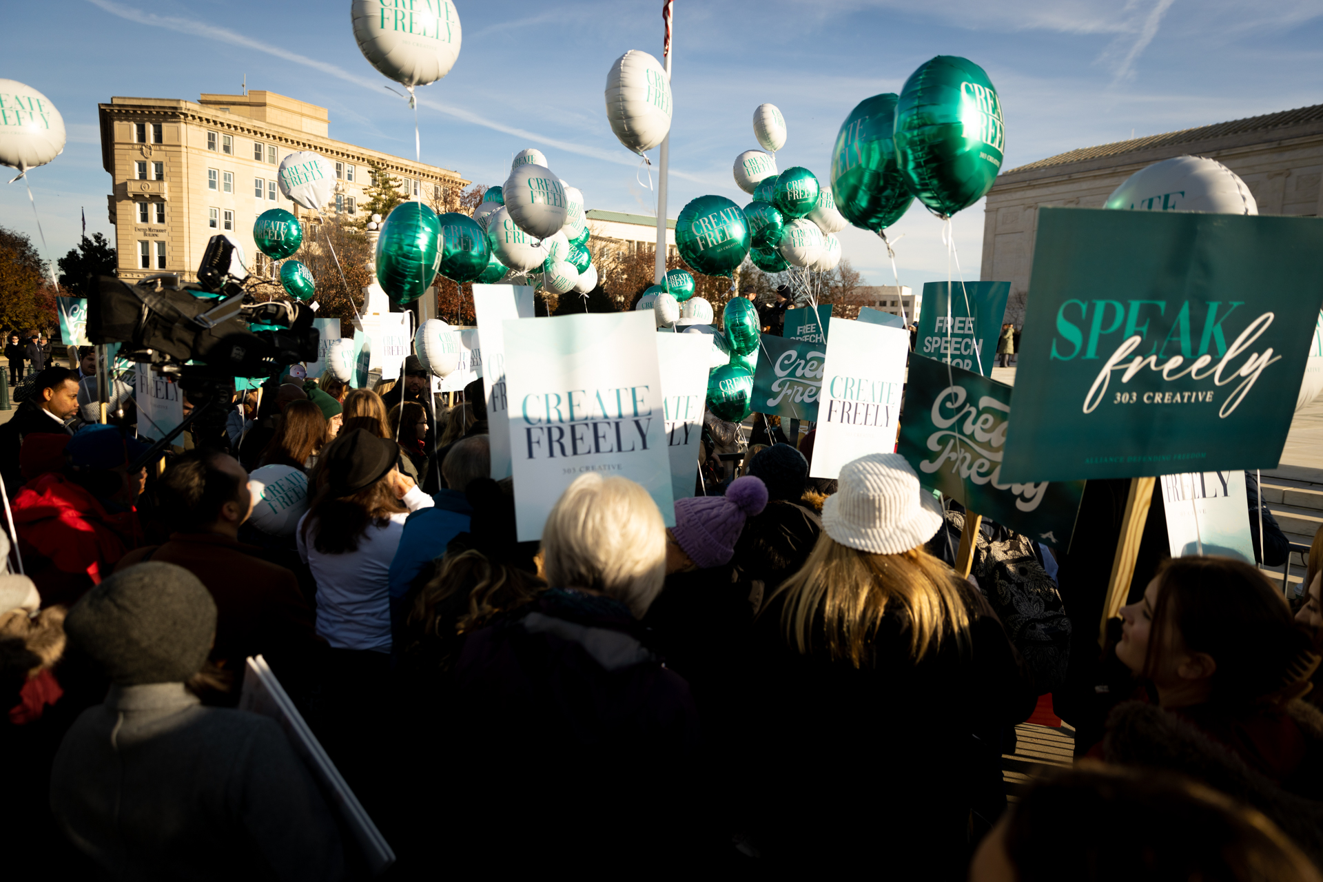 Supporters of Lorie Smith gathered at the U.S. Supreme Court in Washington, D.C., on the day of oral arguments, Dec. 5, 2022.