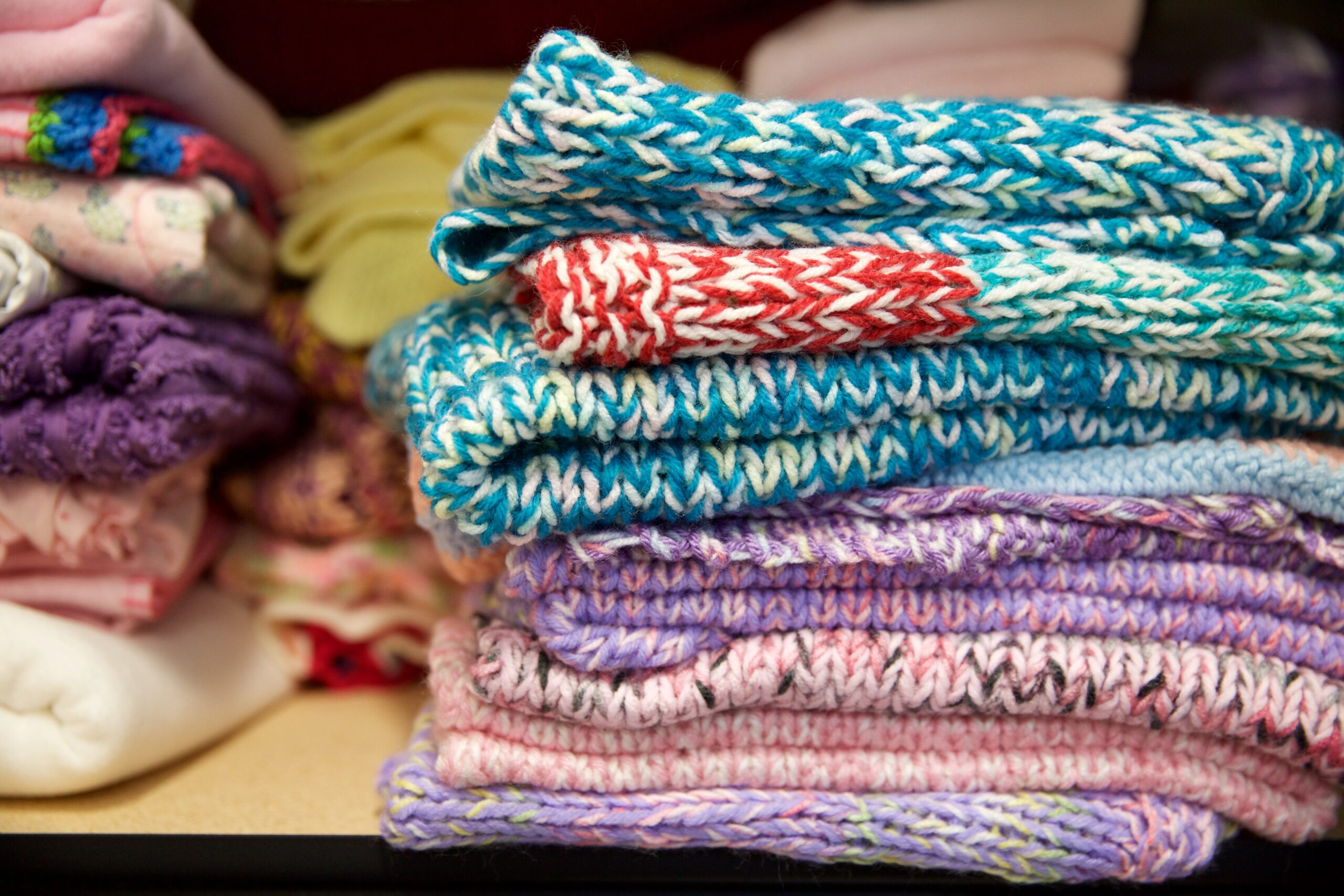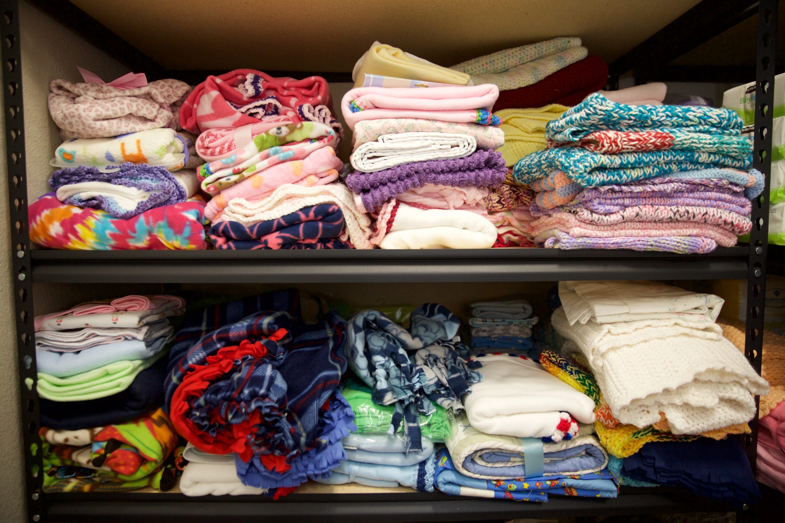 Blankets and other items on the shelves of a NIFLA-affiliated pregnancy center in El Cajon, California, provided to women and their children free of charge.